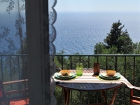Located in the west coast of the island of Corfu, above the beach of Agios Gordios, in a green landscape, with a nice view to the horizon of the open Ionian Sea.